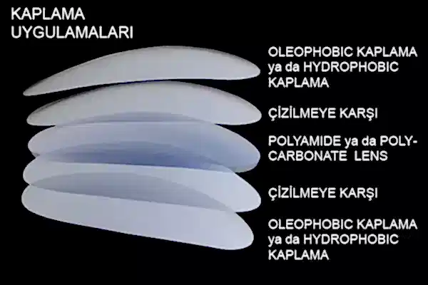 Oleofobik kaplamalar, lenslerin daha berrak ve temiz kalmasına yardımcı olmak için yağları ve suyu iter. Bu kaplama ayrıca parmak izi lekelerini ve lens lekelerini azaltır.